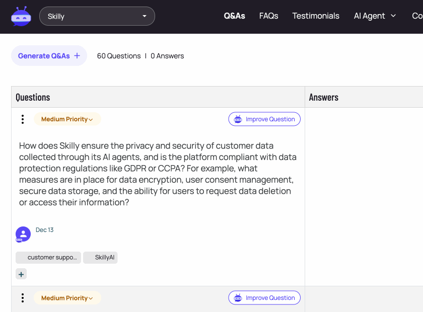 - Answer Length: should your skilly be more concise, or more verbose? Customize this setting along a five-point scale.