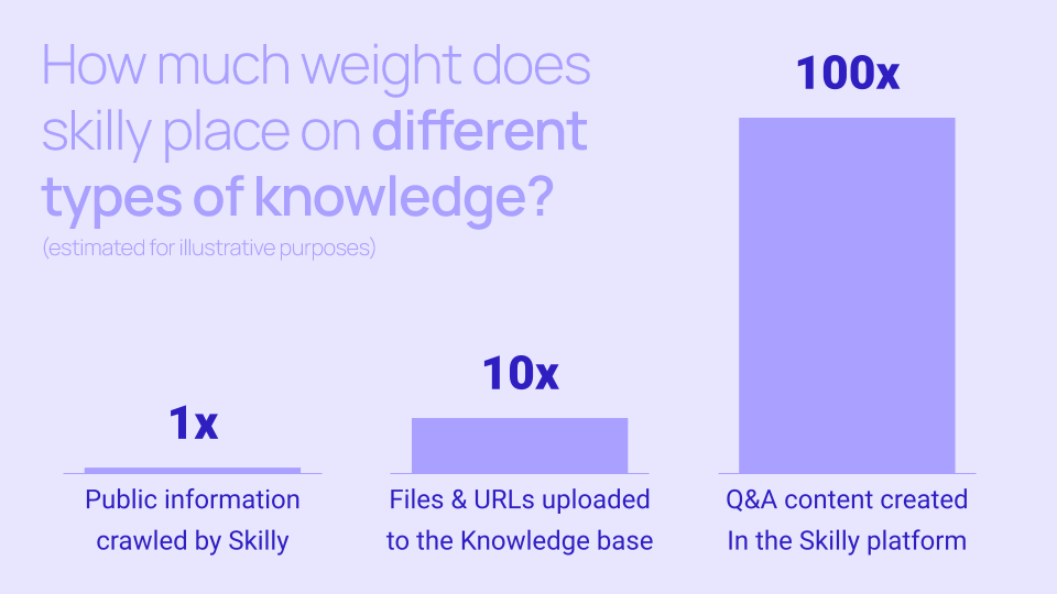 Q&As are so highly valued by skilly for the same reason a human in training would value them: whatever documents a new hire reads, whatever videos they watch, whatever pages they read on the company's website... none of that holds as much weight as having their direct supervisor tell them in no uncertain terms, "here's something our customers want to know, and here's what I want you to understand about it." So in that sense, Q&As are your most high-touch opportunity to train skilly the way you want all your employees to be trained.