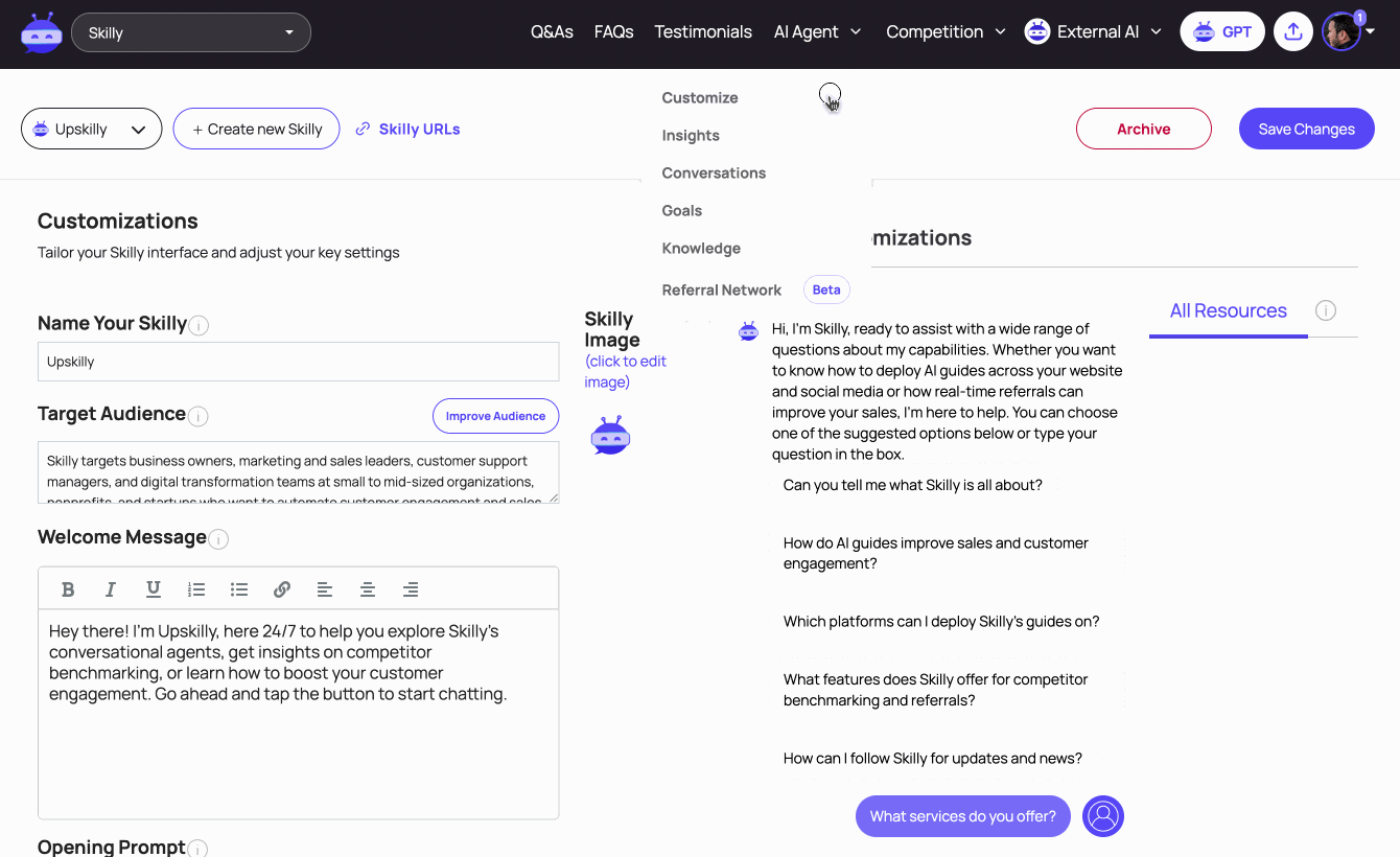 - LinkedIn & Facebook: since both platforms allow for paid posts, you can use a dedicated skilly URL in these posts as a chat-based landing page, then measure the impact on our Insights page... all without having to set up much of the marketing ops process typically involved in a landing page.