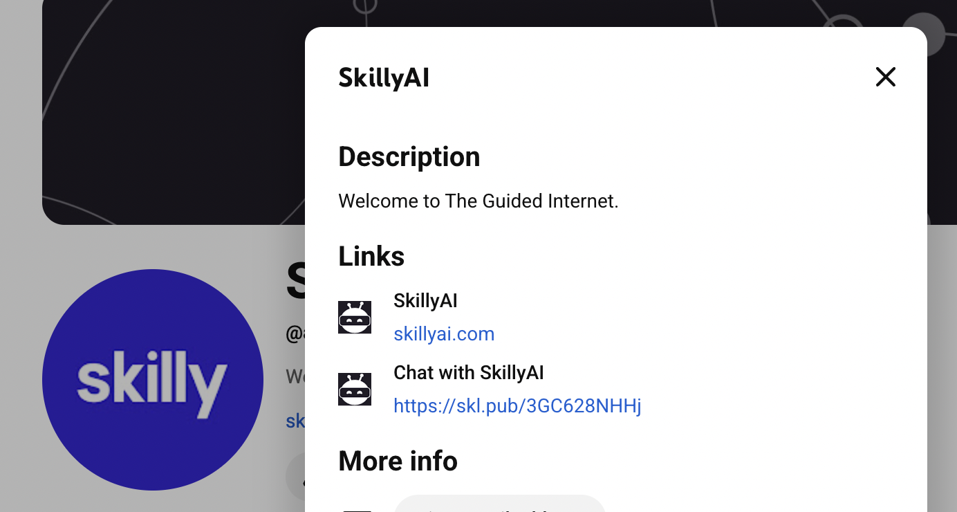 - YouTube (pictured below): YouTube lets you add multiple links to your bio, making it easy to add your skilly URL for visitors who'd rather chat to engage than search around your main site.