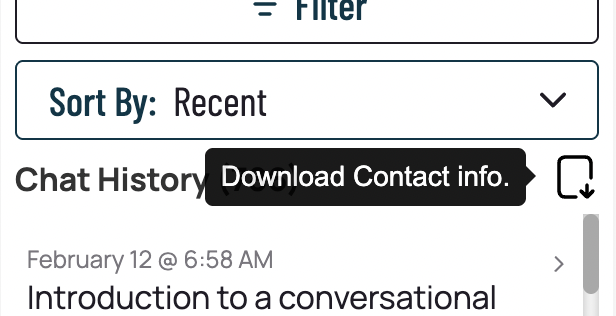 If you've set up your skilly with a preliminary contact form to generate leads and subscribers, then the Conversations section is where you'll find all submitted Contact Info. Under the View options in the left side, you'll see the Sort drop-down, and right beneath that is a box with an arrow signifying the download option. This will save as a .csv file, containing any contact information submitted directly and intentionally by your users for follow-up.