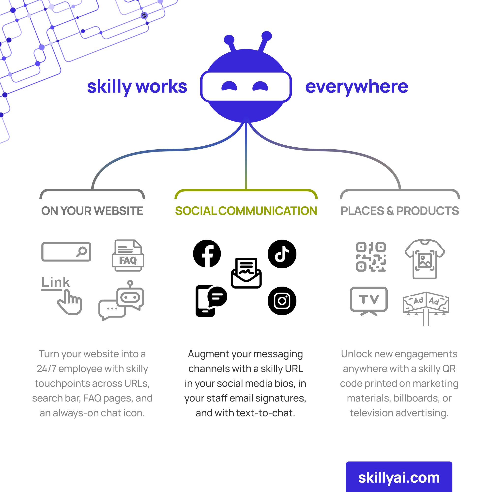 Whether your organization socializes on Instagram, TikTok, LinkedIn, YouTube or Facebook, skilly can live there as a conversational touchpoint for subscribers who want to engage more deeply and intentionally.